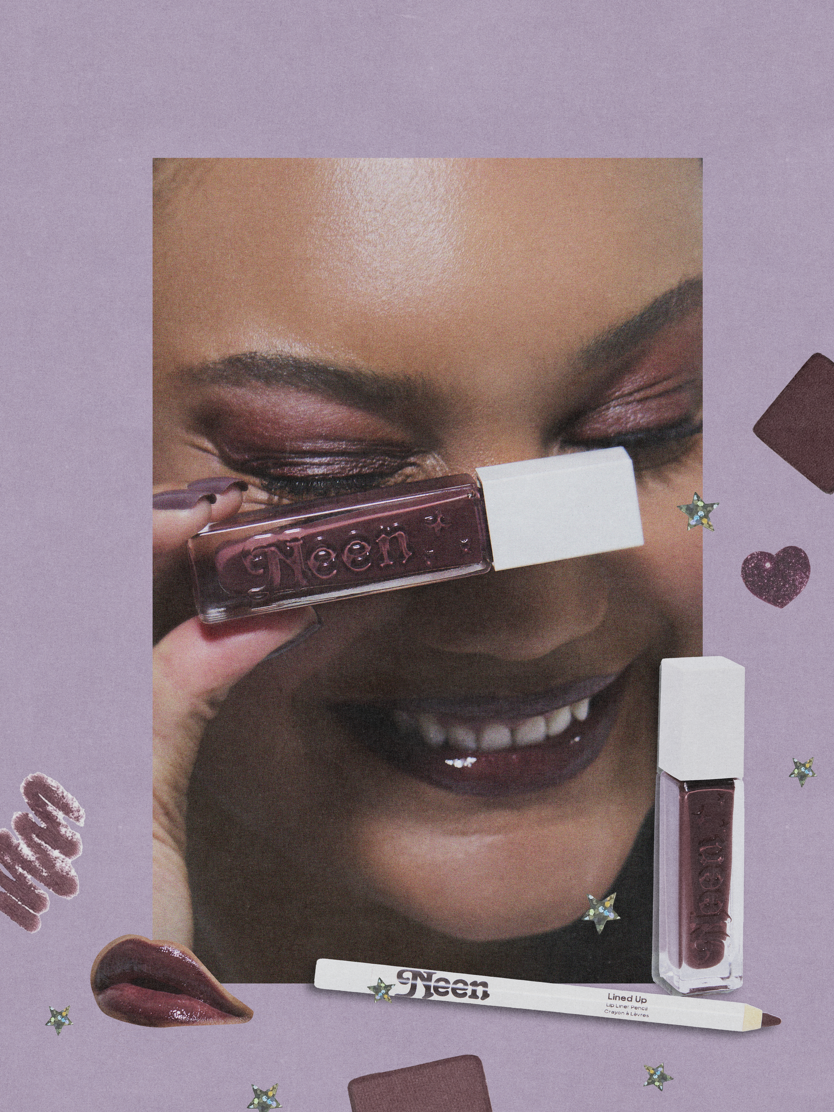 NEEN holiday 2025 glisten up gloss + lined up liner launch portraits and collateral